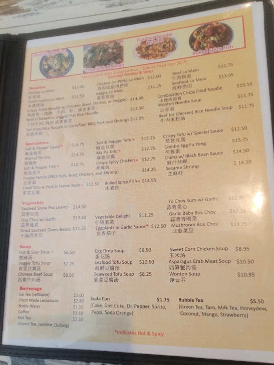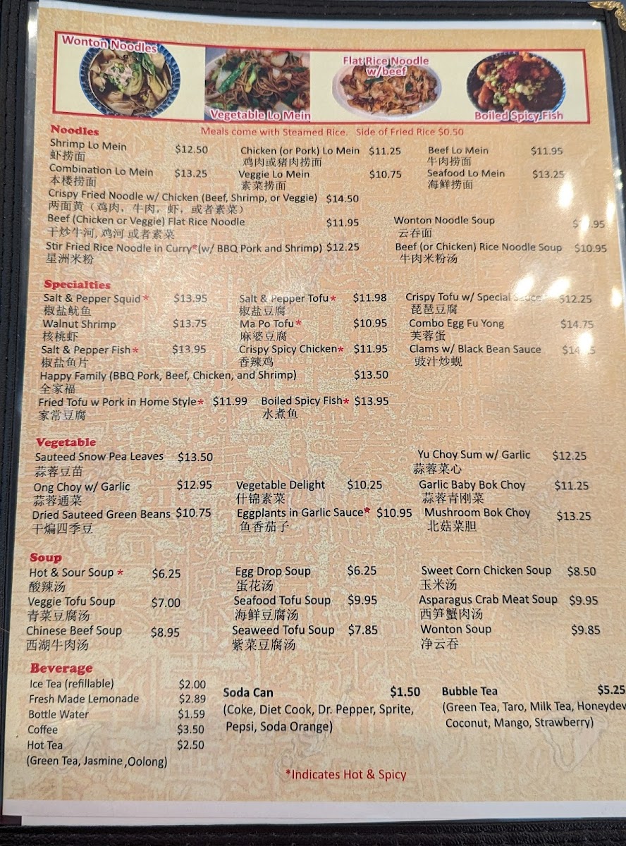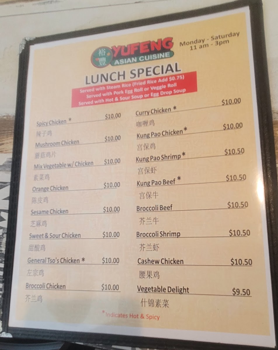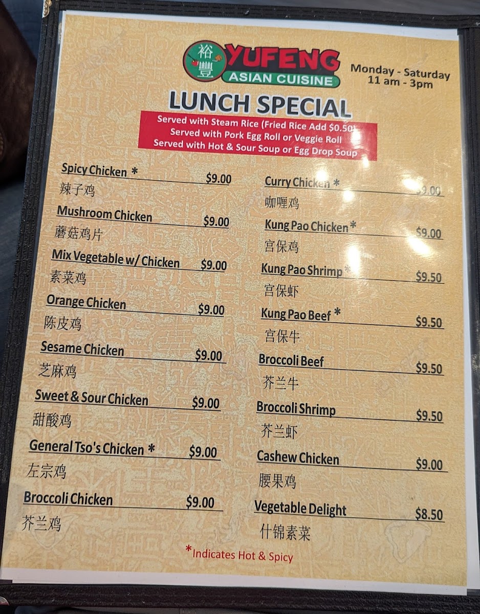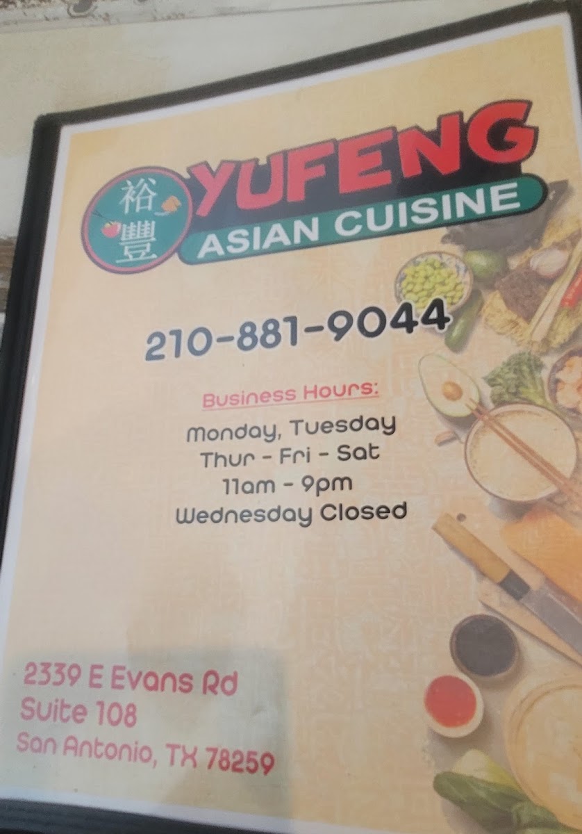YuFeng Asian Cuisine Menu